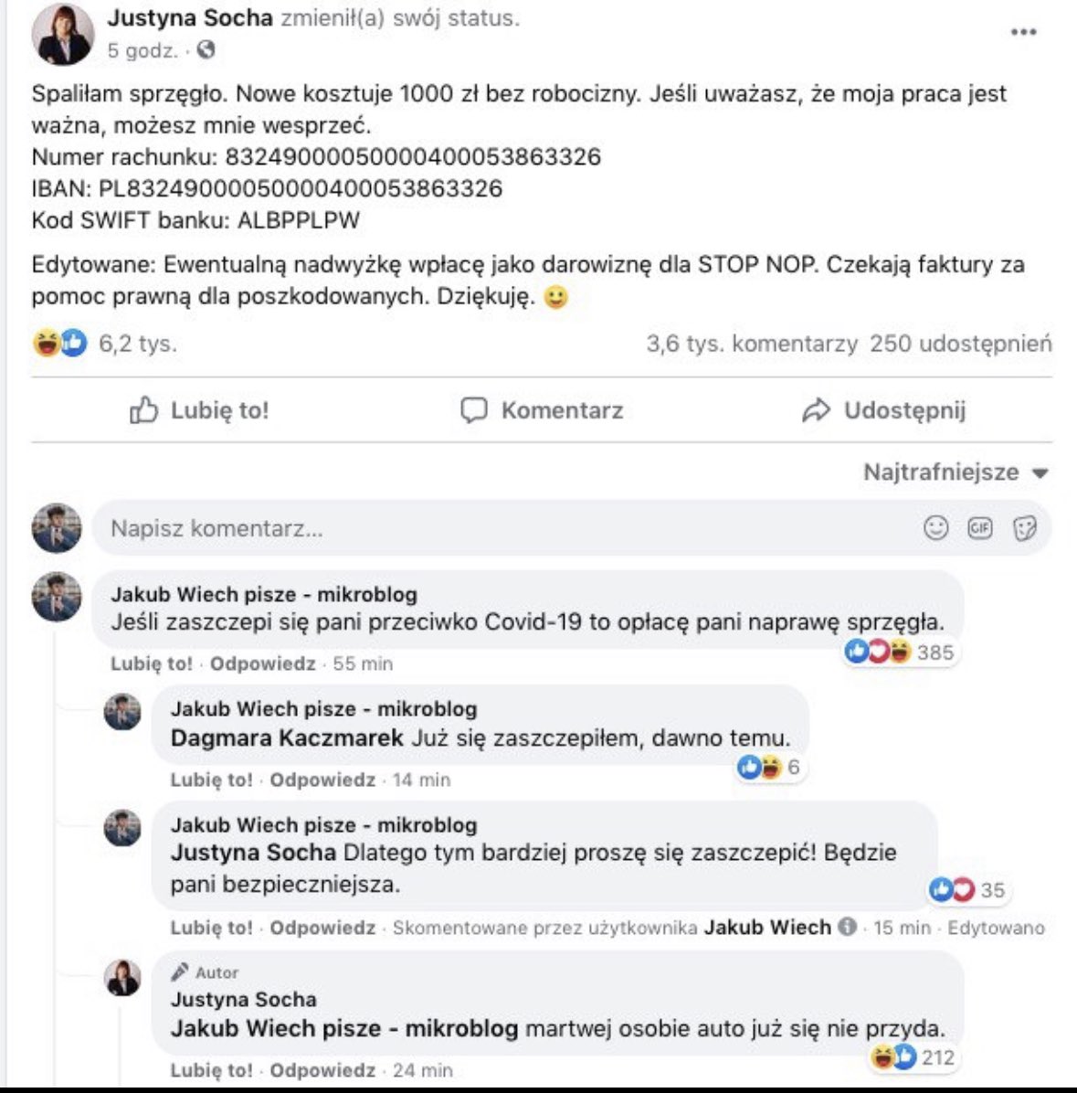 Zbiórka na nowe auto dla Justyny Sochy, kontrowersyjnej szefowej Stowarzyszenia „STOP NOP” pojawiła się w sieci. Celem jest zebranie 15 tys. zł. Przypomnijmy: na sprzęgło do tego samego auta uzbierała ona wcześniej 10 tysięcy złotych