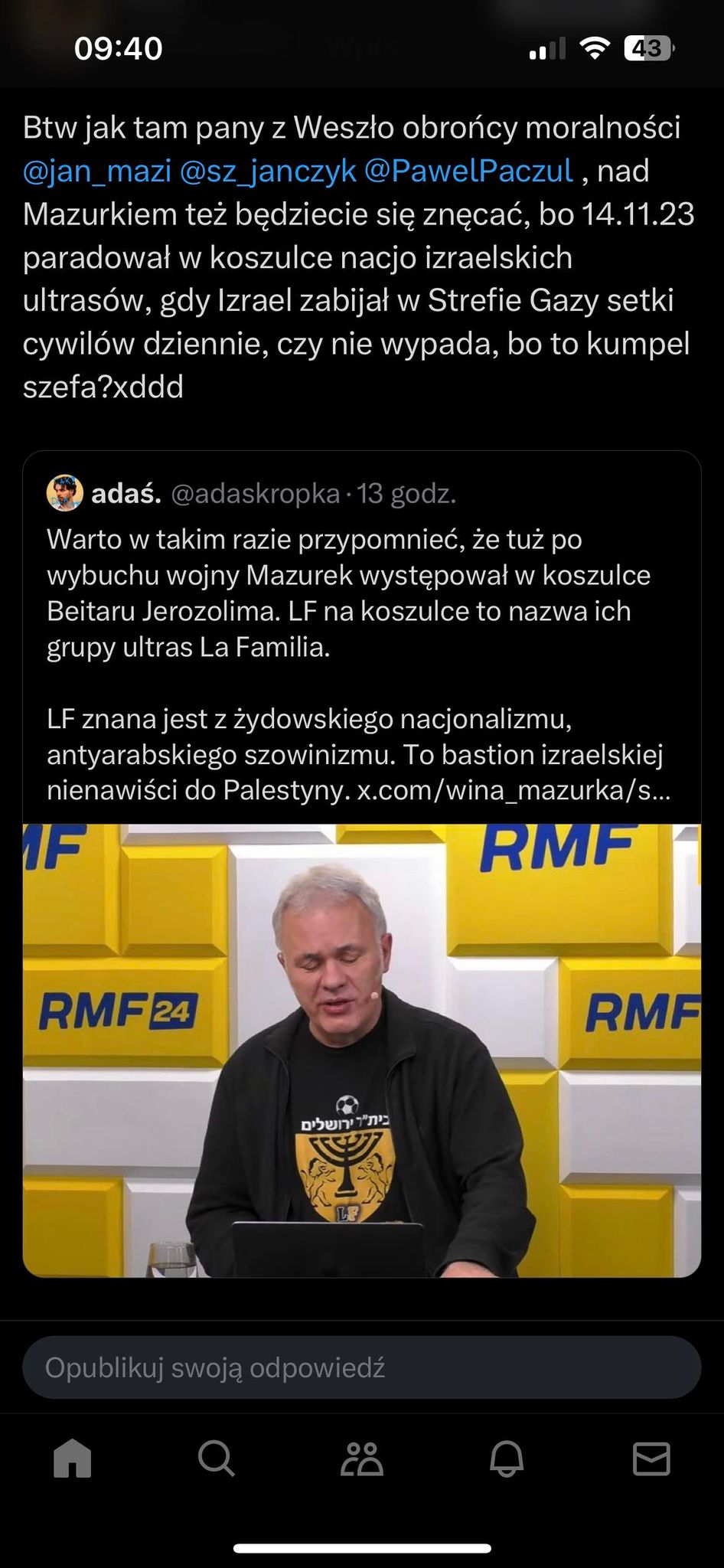 ja akurat jestem rasistą, antyukraiński, antyżyd, więc wiadomo, że zawsze za polakami, nawet gdy będą kopać żydów na rynku we wrocławiu