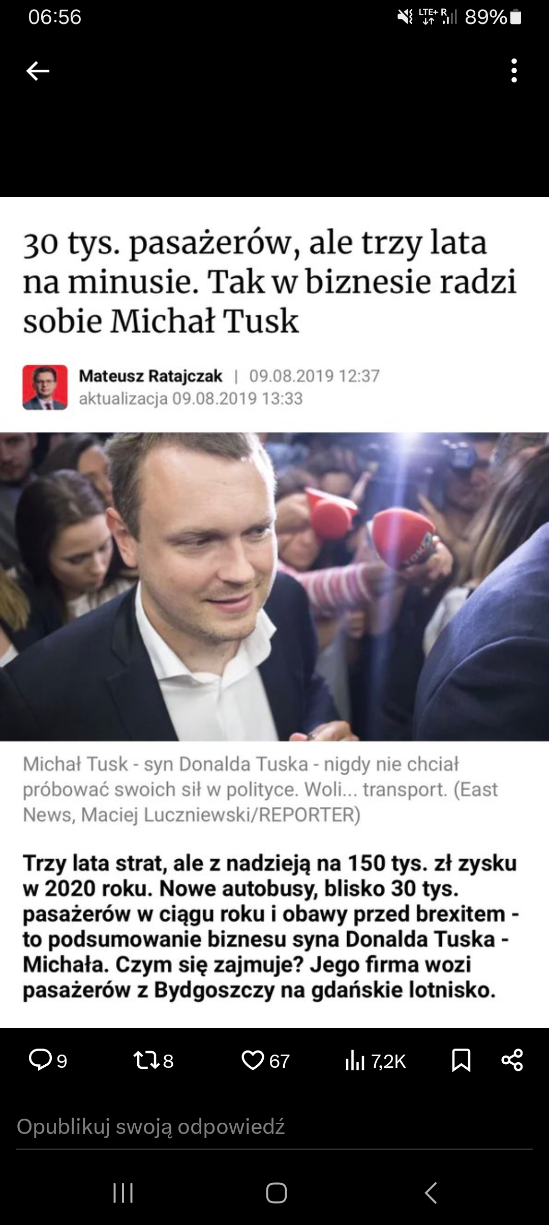 Syn lidera PO związany był od 2021 roku z gdańskim Zarządem Transportu Miejskiego. Michał Tusk wygrał wtedy konkurs na głównego specjalistę ds. inwestycji