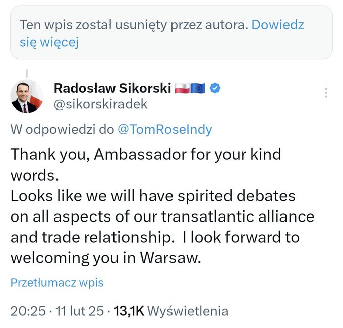 O kurczątko, nowy ambasador USA w Polsce się chyba troszkę zagalopował i Radzio już nie taki fajny :/