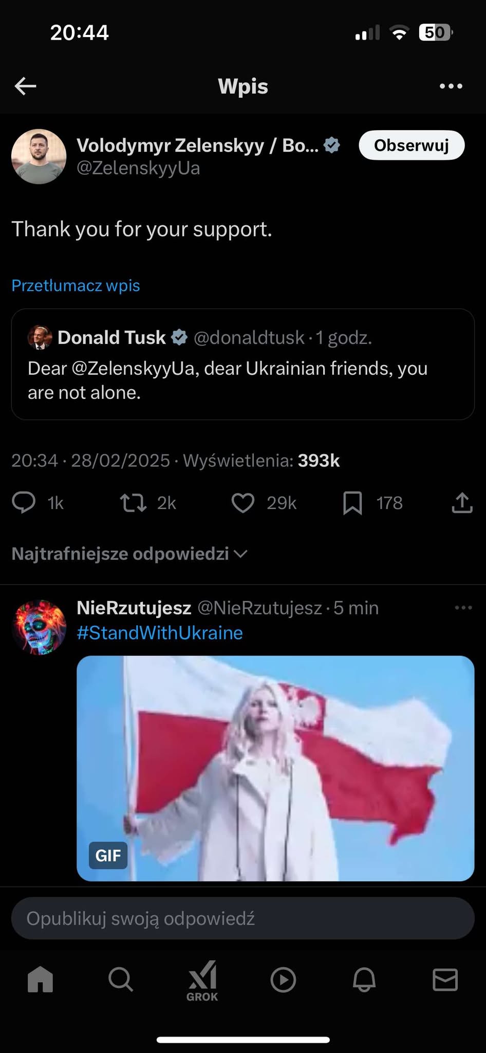 tam pewien upośledzony kolega wyżej ma pretensje do tuska za to że wysłał słowa wsparcia zelenskiemu, a ten mu potem zwyczajnie podziękował, gdzie jak wejdziesz na twittera zelenskiego to zobaczysz że praktycznie wszyscy europejscy liderzy nie licząc może orbana takie słowa wsparcia wysłali