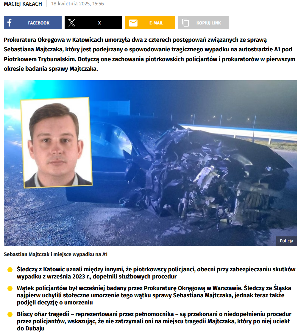 zeby dostal maksymalna dopuszczalna kare to musialby mu bodnar udowodnic zamiar ewentualny ale to sie nie wydarzy wiec pewnie dostanie za spowodaowanie wypadku i ucieczke z miejsca zdarzenia i se wyjdzie po 6 latach a biorac pod uwage jak szybko dzialaja sądy to pewnie zanim zapadnie wyrok to z dwa lata mina wiec faktycznie w pierdlu posiedzi 4 lata :residentsleeper