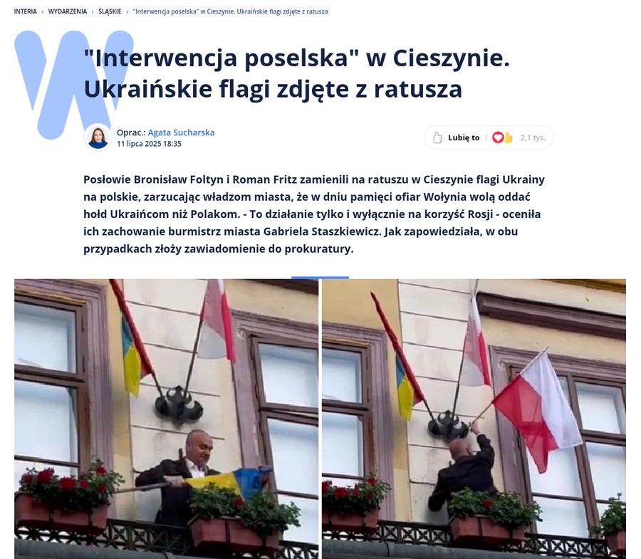 przecież na tym zdjęciu jest flaga zarówno Cieszyna jak i Ukrainy. poza tym flaga Ukrainy wisi na budynku ratusza.