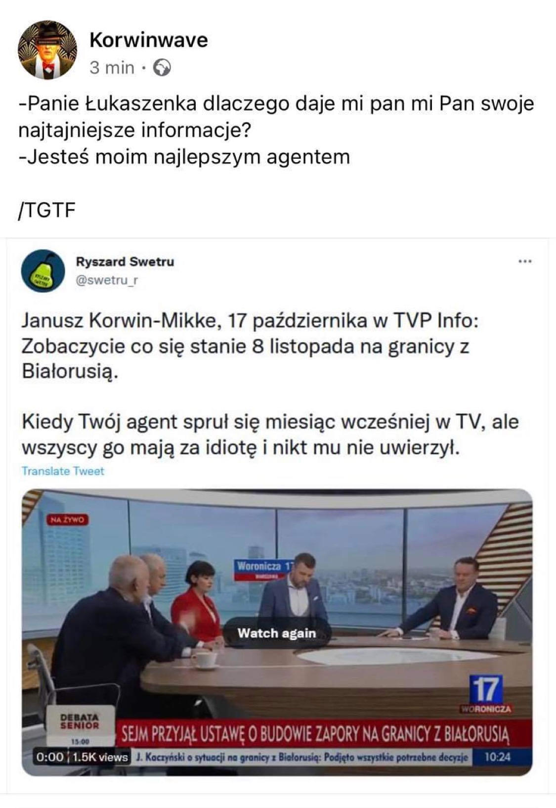 A co do Białorusi, to niby pare dni temu w nocy żołnierze spotkali zielonych ludzików po polskiej stronie, którzy jak ich zobaczyli to spoerdolili na Białoruś