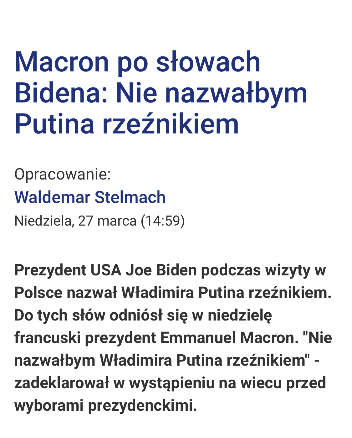 Pewnie ja pisałem bardzo zawile i nie mam pretensji, że mnie nie zrozumieliście, ale wy sami nie słuchaliście go, a on mówił „Rosja nie ma wielkiej armii lądowej, Rosja jest w zasięgu polski, gdybyśmy przeprowadzili odpowiednie reformy” przy tym mówił, że Europa nie ma wojska, co tez jest prawdą. Natomiast jak ogarneli sie Ukraińcy od Krymu, to nikt nie wiedział.