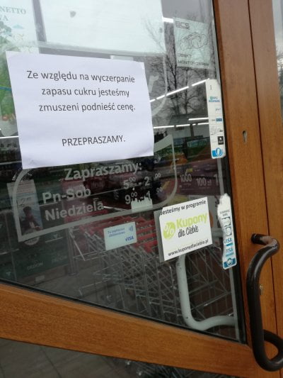 ale kurwa cukier? maka? mleko? a najbardziej to rozkurwia mnie wykupywanie zgrzewek wody xD uwaga uwaga zrodla sie koncza przez wirusa!!!! kupujcie butelki wody po litr za zlotowke (ta z kranu na pewno bedzie skazona)