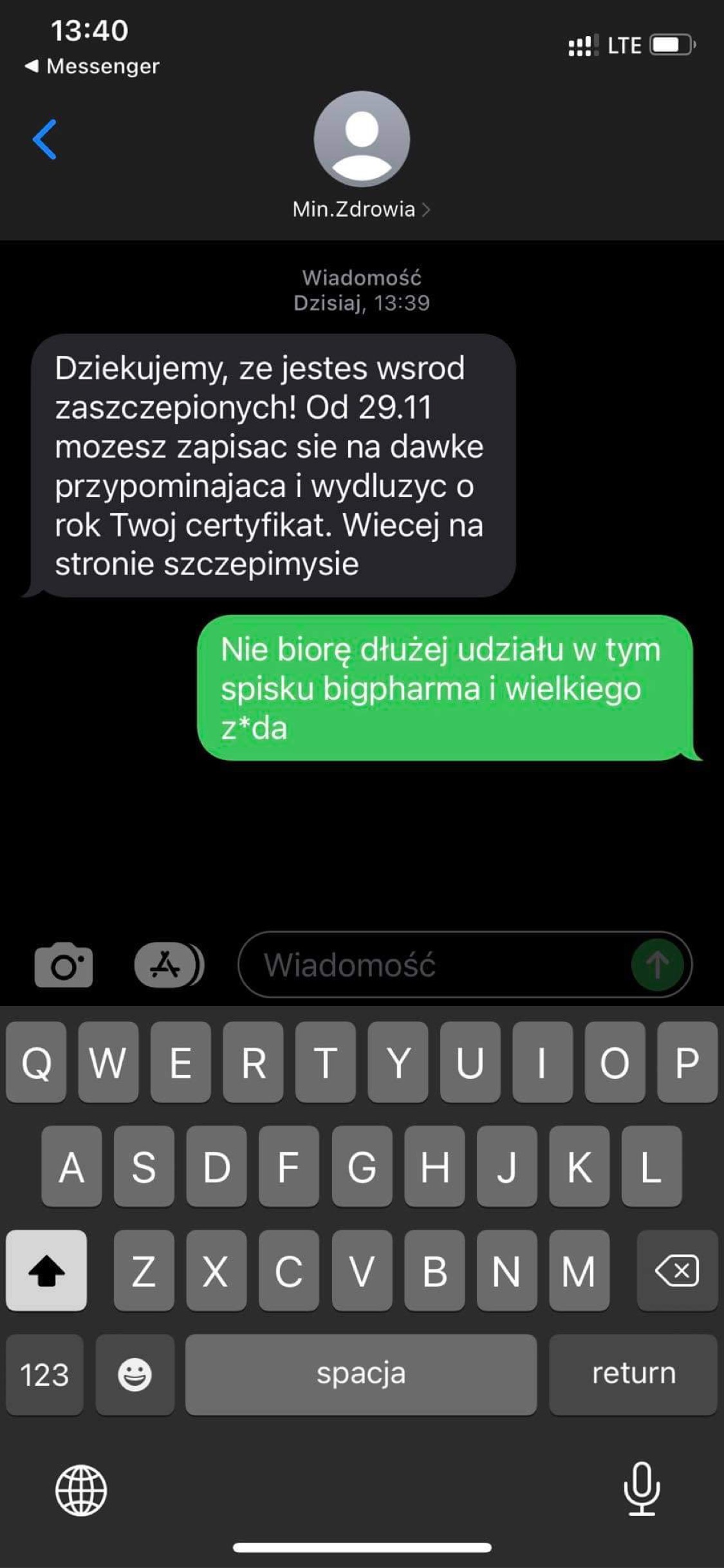 Nie szczepcie się bo potem będziecie pragnęli kolejnych dawek, rodziny się przez to rozbijają bo jedni wierzą tym diabłom że szczepionka ratuje życie a inni nie. Ludzie umierali przez załamanie się służby zdrowia która była przez ostatnie 30 lat nisko dotowana, personel wyjeżdżał na Zachód, no któż by pomyślał że ta bańka pierdolnie akurat teraz jak świat nawiedziła histeria i cyk gotowe.