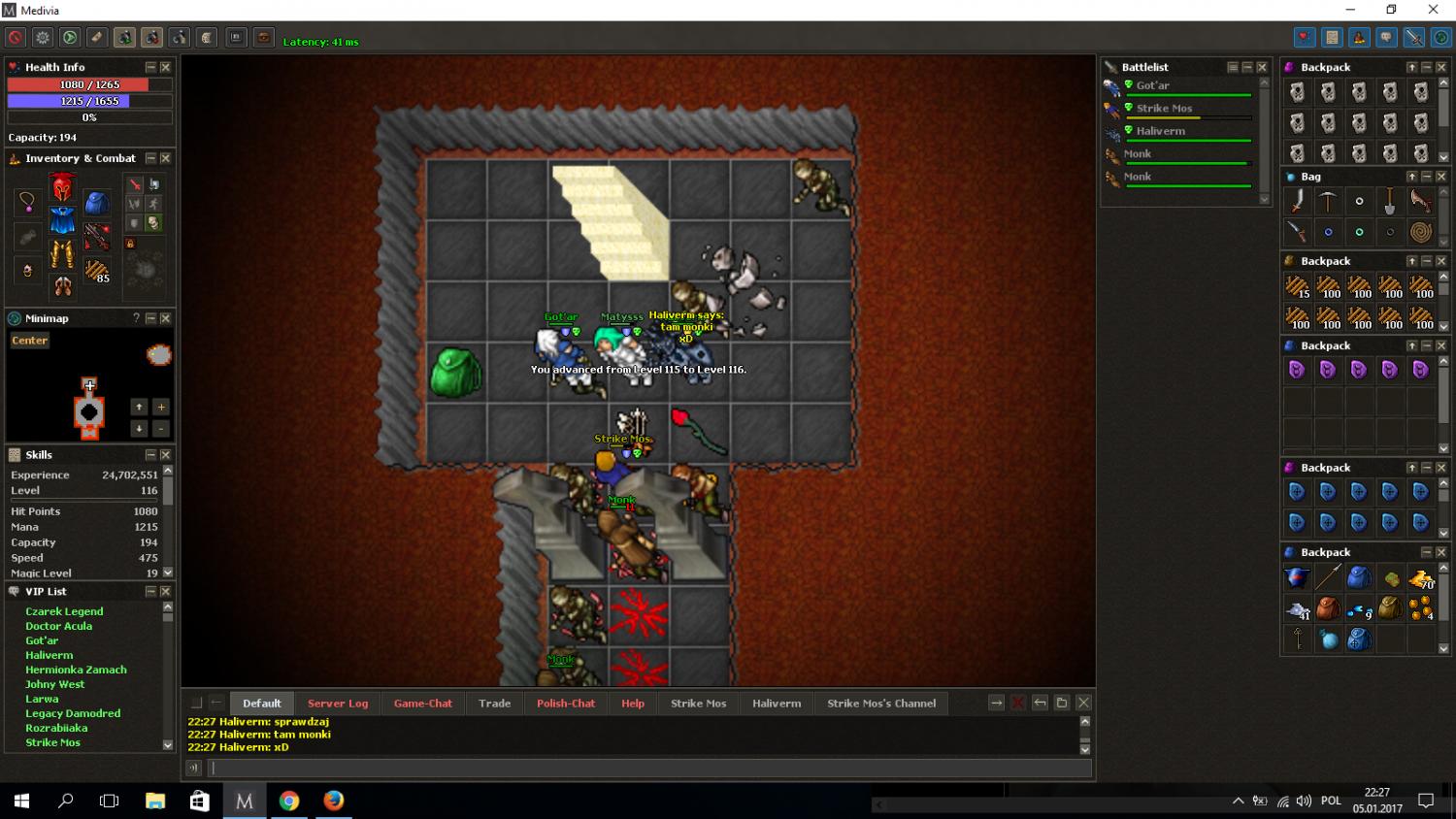 15:02 CM Madragor: Over 250 accounts have been deleted due to cheating. There is a list of banned accounts (173) (http://mediviastats.info/banlist.php). It only shows players who were online during a banishment.