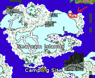 Npc do którego musisz przynieść itemki żebyś miał narty takie jak na powyższym screenie znajduje się na seafoam island (zaznaczone na poniższym screenie)
