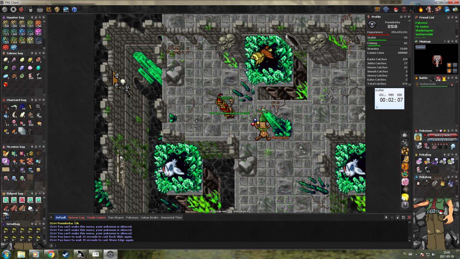 Ma ktoś może jakiekolwiek pojęcie na czym mógłbym huncić Smarkiem 8 +60 z takimi oto spellkami? Scythery, Kraby, gyaradosy, jakies ice daje rade lajtowo, natomiast metangom po calym combo'ie zostaje tyle hp co 1 autoatak, natomiast mawilki jeszcze kilka - kilkanascie lvli. Co pozatymi huntami mógłbym jeszcze bić na 210 lvlu?