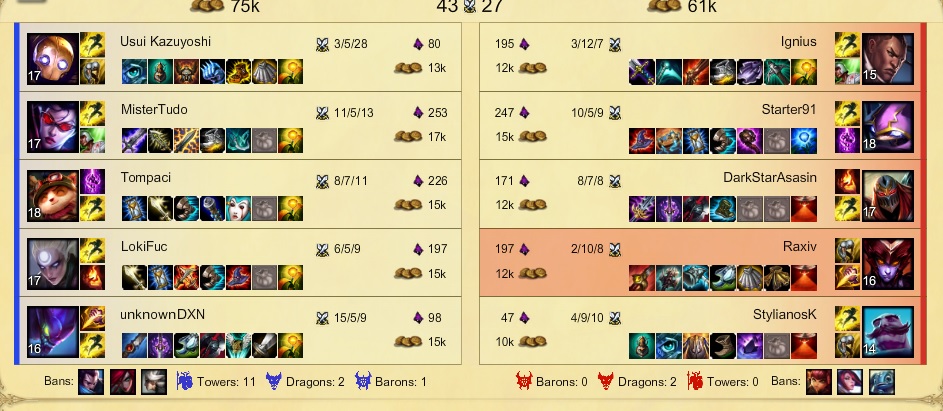 Przecież nie bedę wrzucał samych wygranych, fakt zagrać mogłem lepiej może inny pick nie wiem ale chujowo gra sie shyvanka jak wbijasz w enemy a lucian wali ulta w przeciwna strone ;P