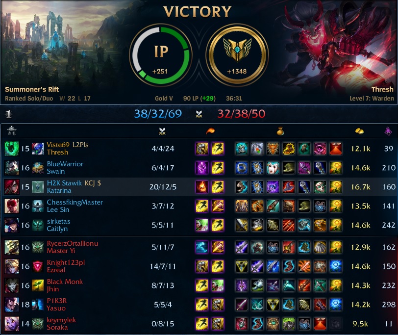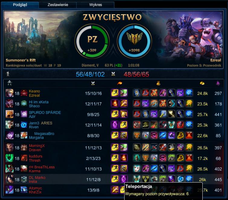 Żeby mieć 7lvl mfciom, btw. kolejna gra, 8/2/10, 103 krepków, gra 20 minut, największy dmg w teamie, ocena A.. S- dla leblanc, która ztobiła 9/1/4, 103 krepki, jakaś czwarta pod względem dmg. S-ka dla Tahm Kencha supp - 5/1/13.. NO PLIZ RITO ;/////