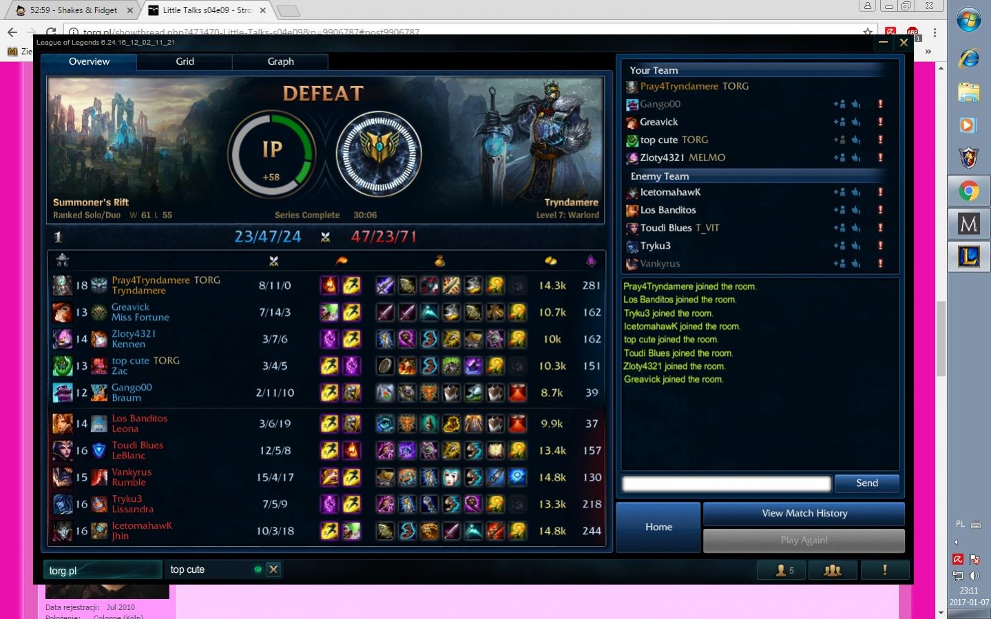 gierke przegrywalem -11k w 21minucie i 0-8 w towerach