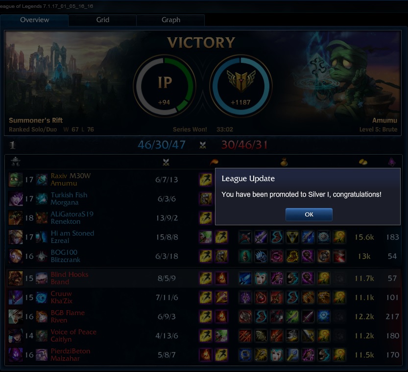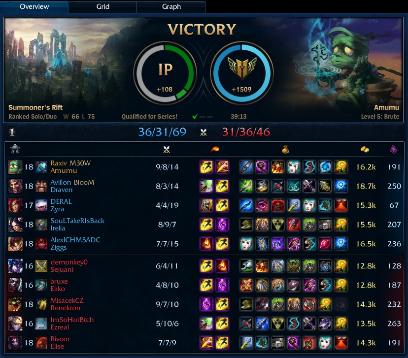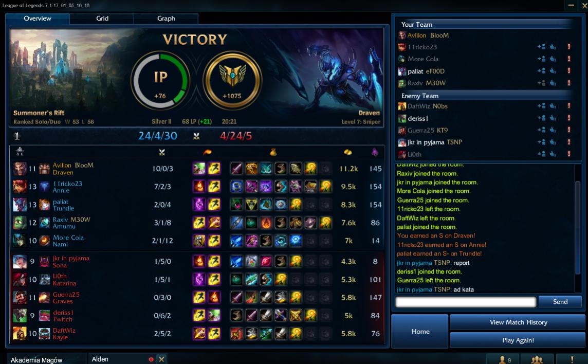 w sumie, na solokolejce nie jest lepiej xd 31 minut gierka i nikt nie był afk. Swoją drogą, chcieliście buffów adc to macie teraz dravena co z 1 autoattacku robi taki dmg jak jayce na EQ. Aha, no i draven był na bocie behind, a ja dośc mocno topa pocisnąłem