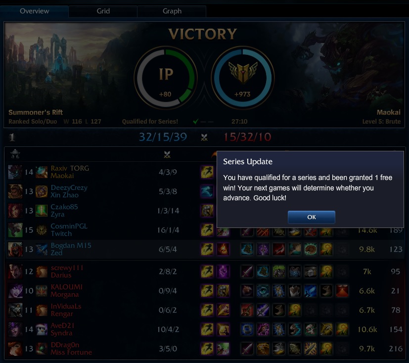 Mam skrzynkę za viktora w tym sezonie, gdzie na pewno nie grałem duo z viktorem, a sam mam A+ w tym sezonie na nim najlepszą ocenę. Więc riot pewnie przyjmuje, że premade to po prostu ktoś z teamku na soloq albo nie działa tak jak napisali.