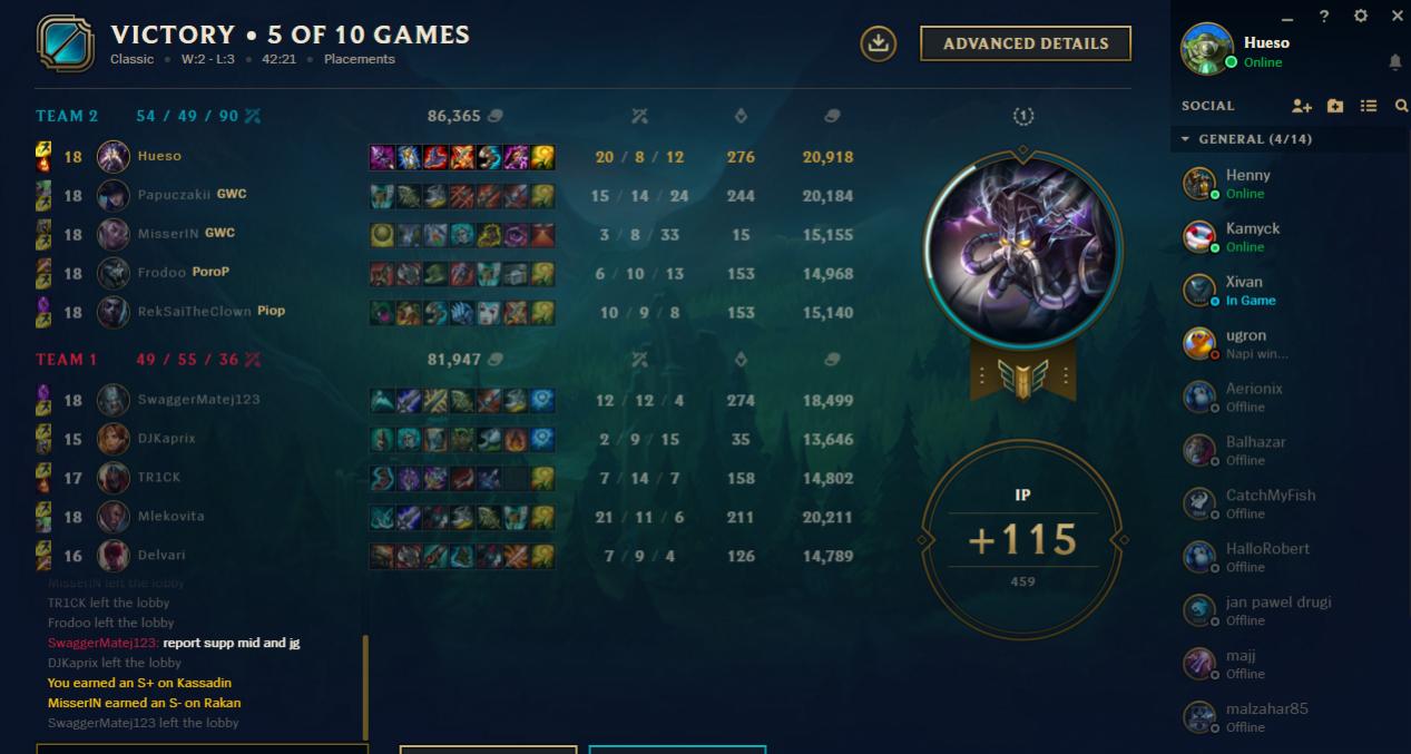 piękny screen, leona bez sighstonea z bomi cinderem, lee sin z hydra, essence reaver na tryndzie, gauntlet i lichbane na ekko xD