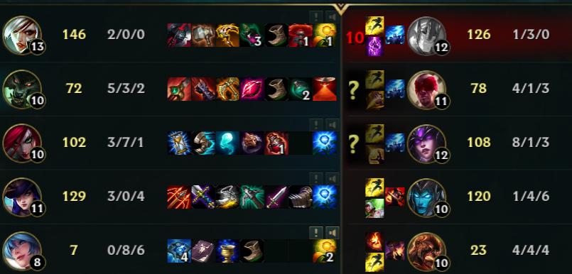 póki co 4:1, raz zjebałem bo miałem kennena na topie i kampił mnie pedał lee sin, do tego tim nie był zbyt pomocny i się skończyło szybko