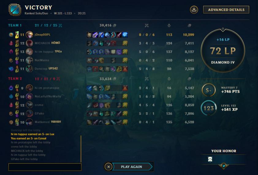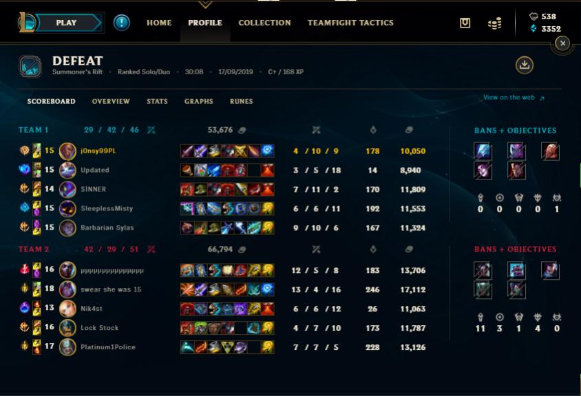 Kolejny perma banik wpadł xD Przez kilka sezonów grania w to gówno nie osiągnąłem nic poza zszarganymi nerwami przez jebanych idiotów. Jak ktoś chcę wywiad z przegrywem to zapraszam do mnie. Jebać lige legend soł macz. Dejcie jakieś inne gierki coby czas zabić.