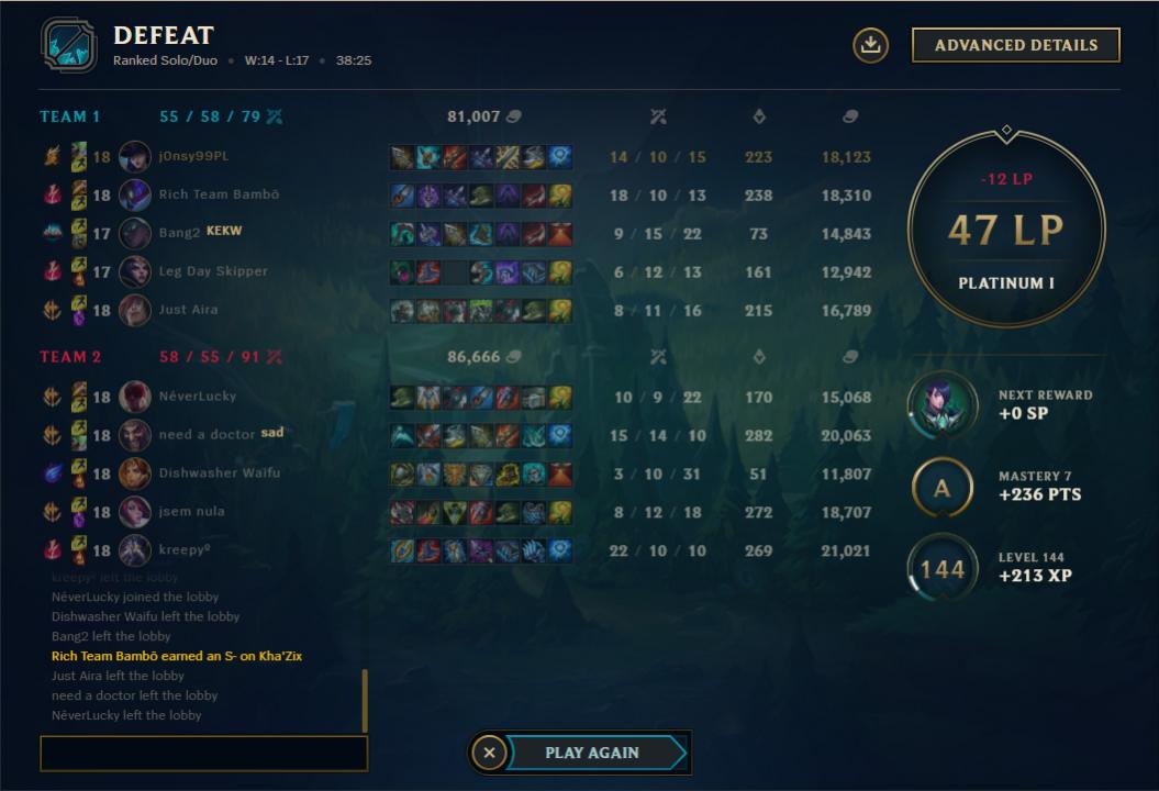 niestety gowno mmr konto co w goldzie od 3 sezonow ale cusz sa czempiory gram se z nuduw to chuj
