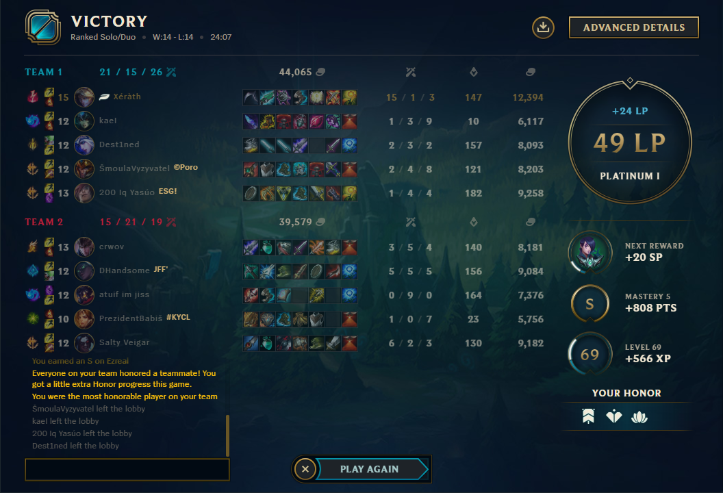 ja jak robie 15/0 to każdy wyjabaned i zero honorkuf