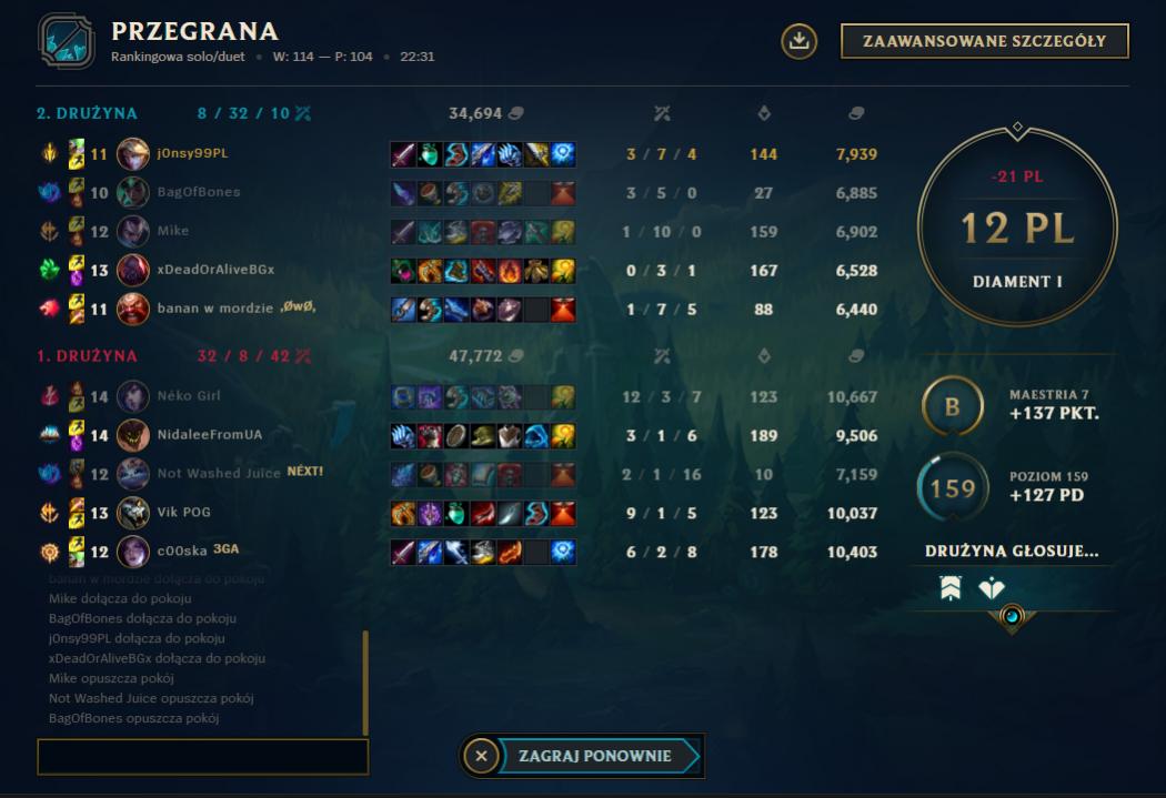 Mogłem złożyć wcześniej executuonera, więc dalej patrzę na swoje błędy i wiem żeby grać lepiej muszę grać lepiej