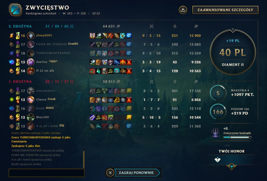 ostatnia gra dzisiaj, nastepna o 24 bo teraz pewnie wyjebie klasycznie 120 ping xD