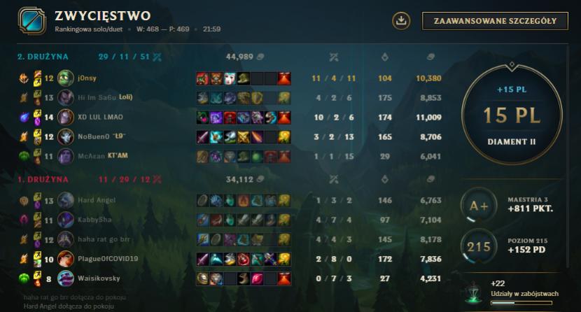 wyrownałem win ratio, jednak do wyrobienia mmr to trochę jeszcze jest xD, może uda się wbić master tier :kappa