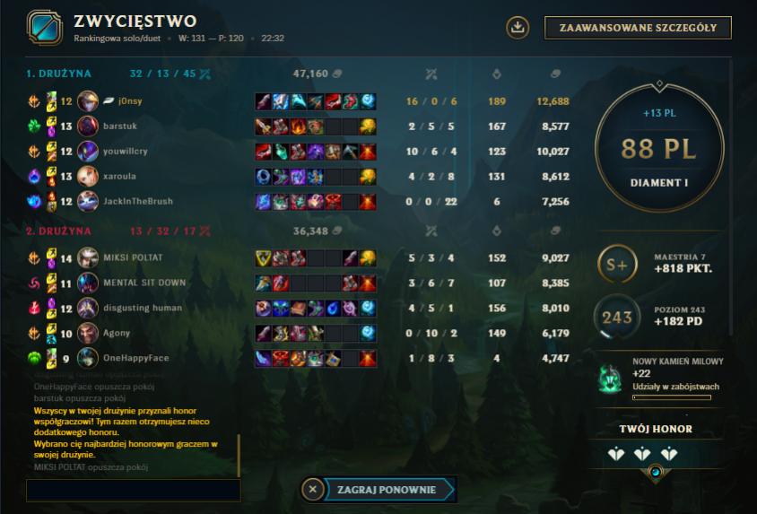 no eune, ale gierka na top3 challenger wygrana xD. chociaz nie wiem czy jest za bardzo sie czym chwalic, bo lvl2 wjebany i pozniej tulenie turreta i strzelanie na szczęście celnymi strzałami