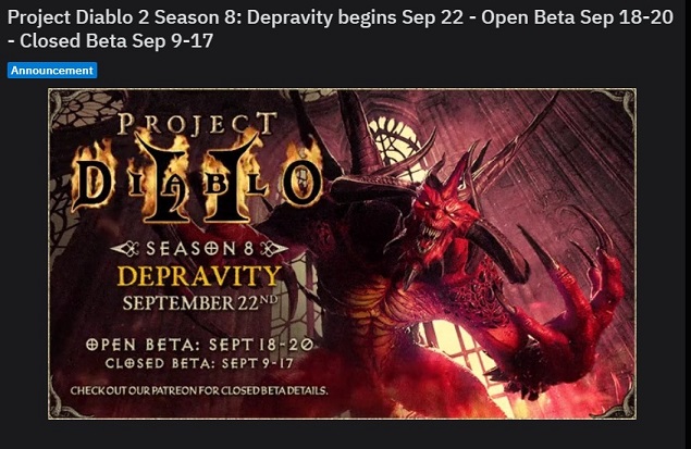 Przypominam, że Project Diablo 2 sezon 8 już jutro(18.09) będzie dostępny jako open beta.