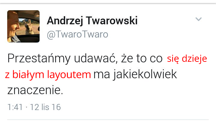 @Decretis ; znowu się zjebały emotki w białym layu, tzn. nachodzą na linię niżej, a druga rzecz to podczas pisania posta tam z prawej nie widać wszystkich dostępnych emotek :zaba to że używam białego laya, to nie znaczy że jestem gorszy, proszę przestać mnie prześladować :apuapustajapropelle