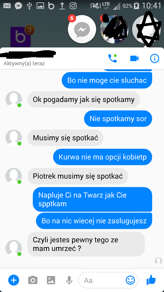 - grozi wszystkim na fejsie wysyla foty z nozem ( moge dodac dla ciekawych )