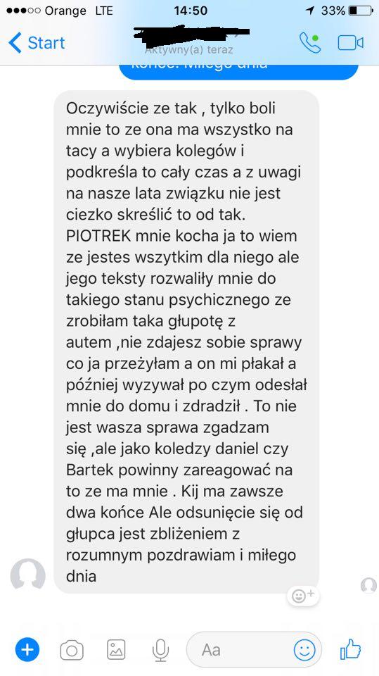 - wkurwiam sie po tekscie 'jak ja go moge zdradzic haha'