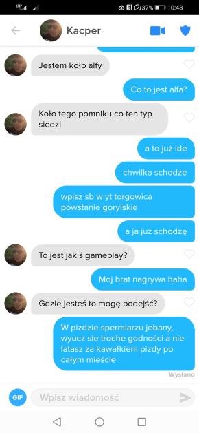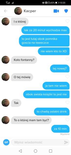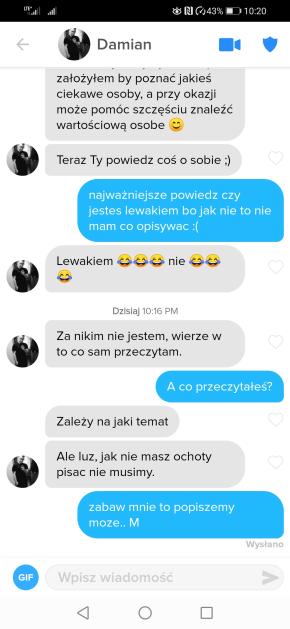 Kurwa chłop może 1 raz się przełamał i do kogoś na tinderze napisał a ten mu psychikę zniszczył, jeszcze jutro w wiadomościach będzie ,że topielca przy fontannie znaleźli xD