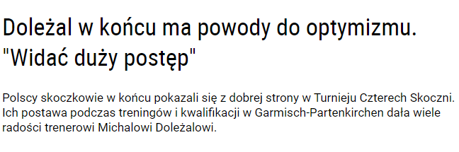 ja tylko przypomnę, że wyśmiewani tutaj skupień i mateja potrafili zająć odpowiednio 13. i 17. miejsca w końcowej klasyfikacji turnieju czterech skoczni