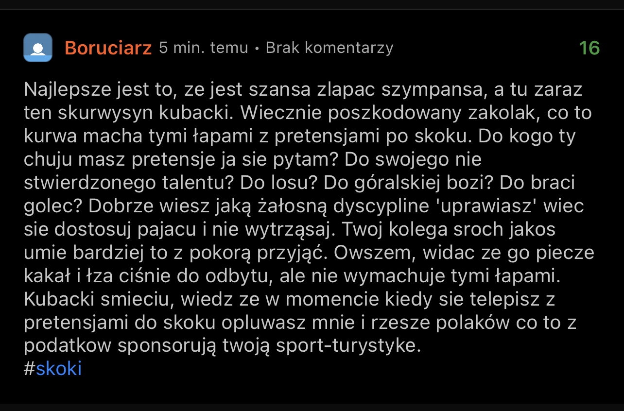 polacy dzisiaj zaliczyli najgorszy konkurs na swojej skoczni od 22 lat, a jak pisałem że mateja z pochwałą byli lepsi od kartoflarza i głuptaka, to też się śmiano :kekw piękny to sezon, nie mogę się już doczekać następnych zawodów