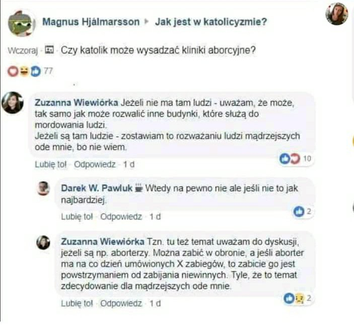 Najlepsi są ci pseudo pro liferzy, ktorzy krzycza o zabijaniu dzieci, ale jednoczesnie nie jest dla nich problemem zabicie innych ludzi