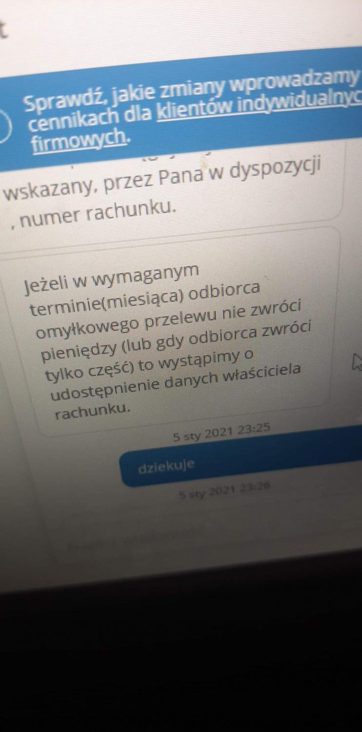 Jeśli odbiorca przelewu odmówi zwrotu pieniędzy lub przelew nie zostanie zrealizowany w ciągu 30 dni, wówczas bank może ujawnić dane odbiorcy płatnikowi. W praktyce umożliwia to dochodzenie roszczeń pechowemu płatnikowi w sądzie na podstawie przepisów o bezpodstawnym wzbogaceniu.