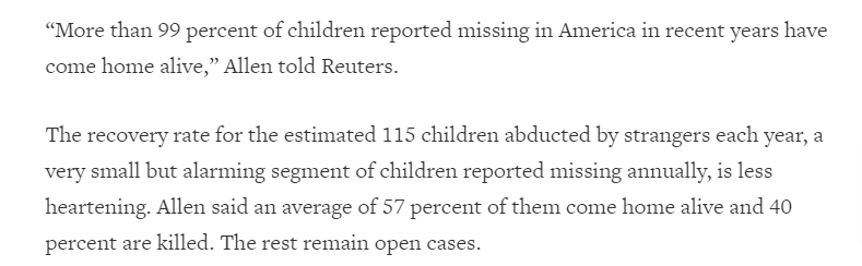 A to nie jest przypadkiem tak że ponad 90% tych zagonionych dzieci to po prostu jedno z rodziców zabiera i znika i nikt nie szuka bo każdy wie ocb? Może mieć pamięć myli i coś przekręciłem.