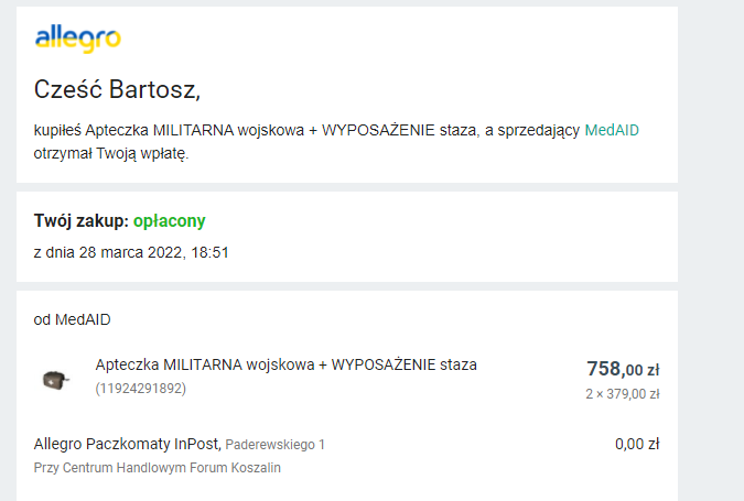kupione i oplacone 2 apteczki