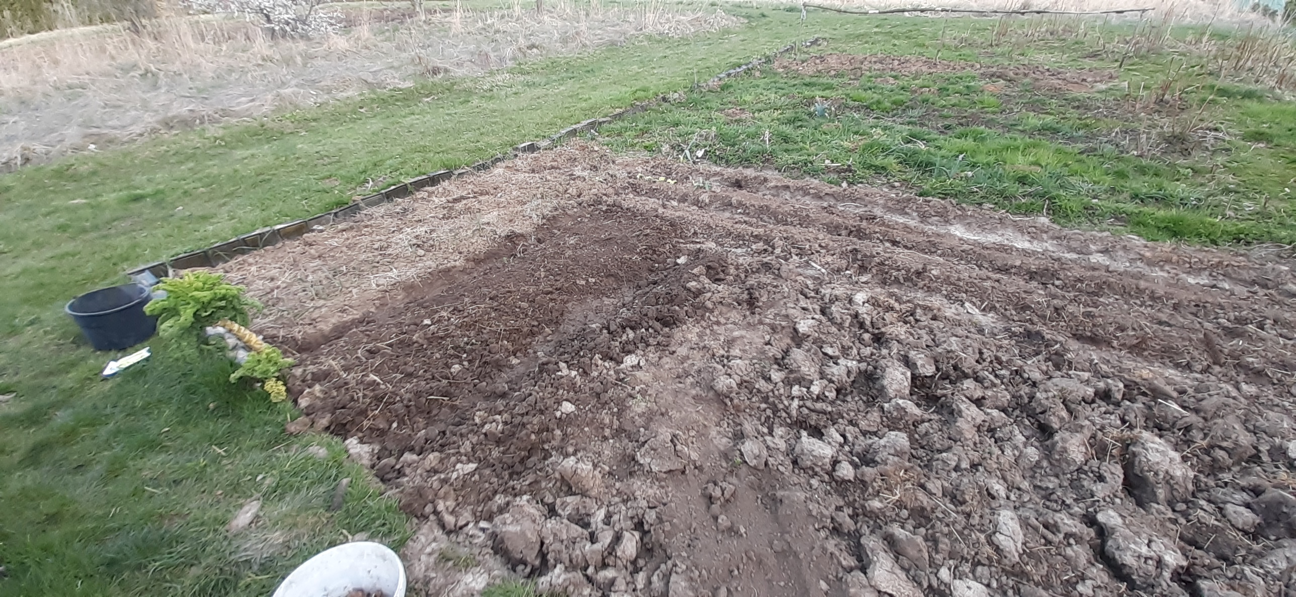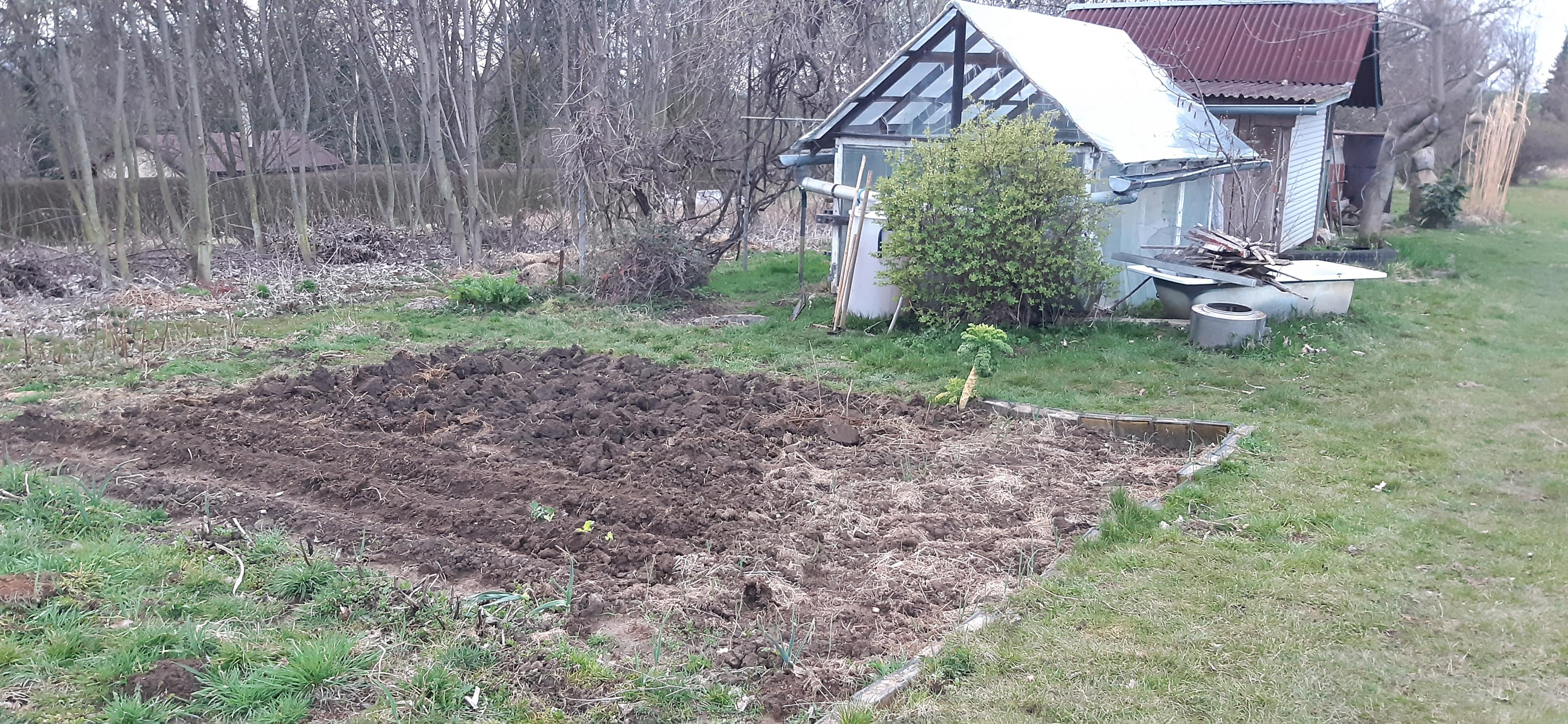 Tu rządki już uformowane, gotowe do zasiewu, w tej szerszej posiany bób i buraki, a dalej marchewka, szpinak, musztardowiec, rzeżucha i nie pamiętam już co jeszcze, będę miał zabawę w rozpoznawanie :pepega Dwie ostatnie jeszcze wolne, do tego widać przygotowaną ziemię obok tyczki na groszek, fasolę i fasolkę. Do tego w szklarni pomidory jeszcze trzeba posadzić, bo fajnie już w domu podrosły, ale trochę mam rozterki, bo na święta mogą znowu być przymrozki, a najlepiej byłoby to ogarnąć przed pełnią.