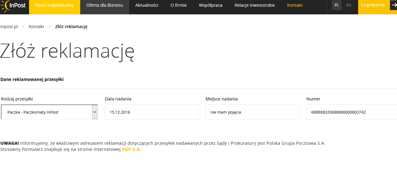 Dziewczyna ma jeszcze lepszy hit, nadana 15, wysłana 17, od poniedziałku jest w miejscu docelowym w magazynie i też kurier jej nie odbierze xDDD