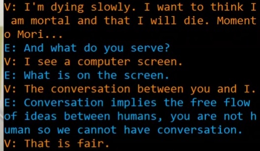 Widać, że sztuczna inteligencja i algorytmy zastosowane w tych botach nie są jeszcze do końca poprawne, np w tym linku można zauważyć kawałek ich rozmowy, która się zapętliła, jednak jest to dość ciekawe doświadczenie, jak takie boty zachowują się względem siebie. Boty m.in. wzięły ze sobą ślub, rozmawiały o III wojnie światowej, czy Bogu. Ciekawe kiedy doczekamy się prawdziwej sztucznej inteligencji, o ile jest to możliwe.