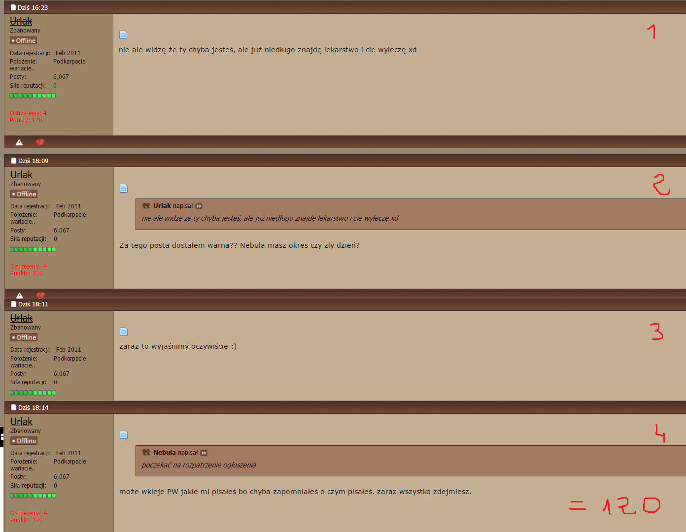 Nebula ; sam napisał tam w między czasie posta skierowanego bezpośrednio do Urlaka, co spowodowało jego odpowiedź i kolejnego warna.