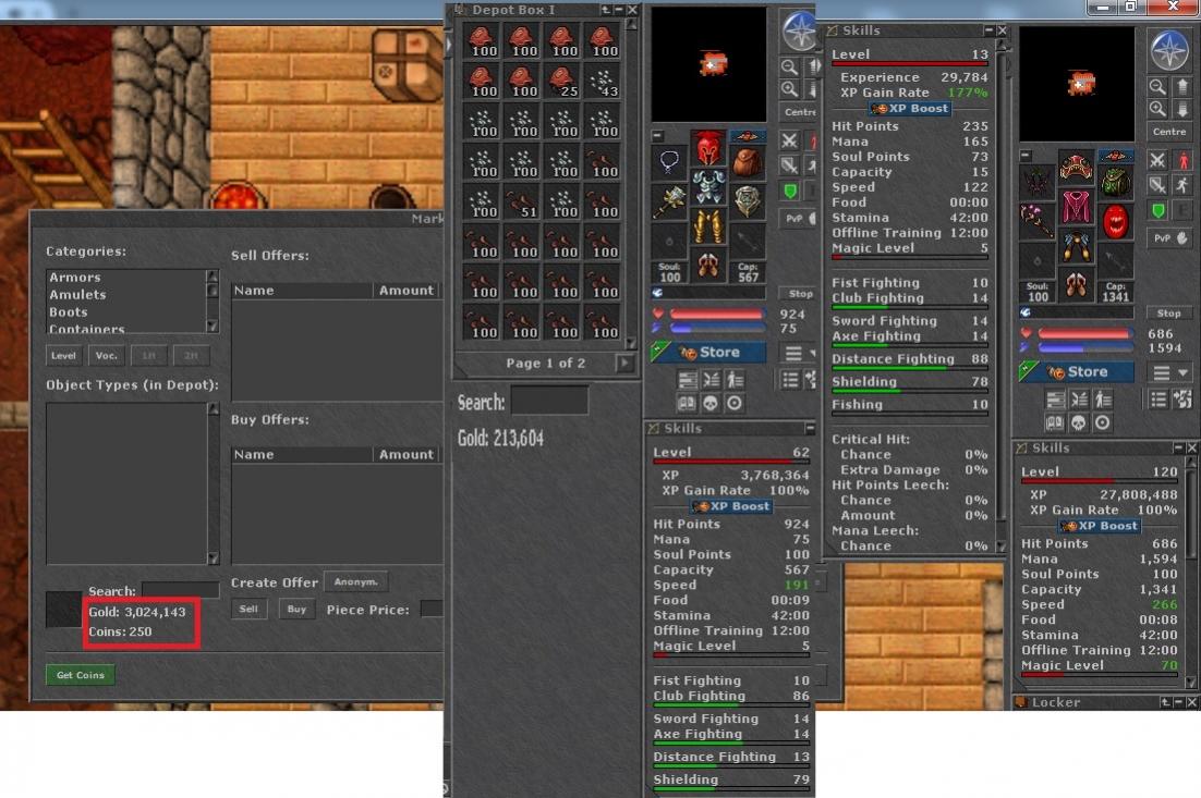 Uwagi: wszystko widać na ss ok. 3.5kk + 250 tibia coinsow