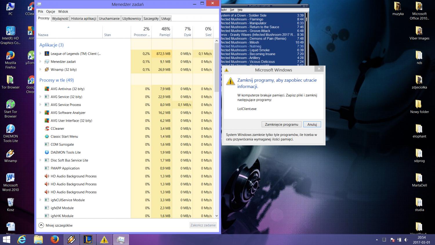 Ostatnio podczas grania w LOLa wyskakuje mi komunikat, że mało pamięci RAM.