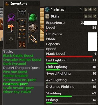 - Elite Knight 54lvl zrobione:f-ax,necro-q,bk. niezrobione: banshee i OF. - ma postmana, 67/63 axe.