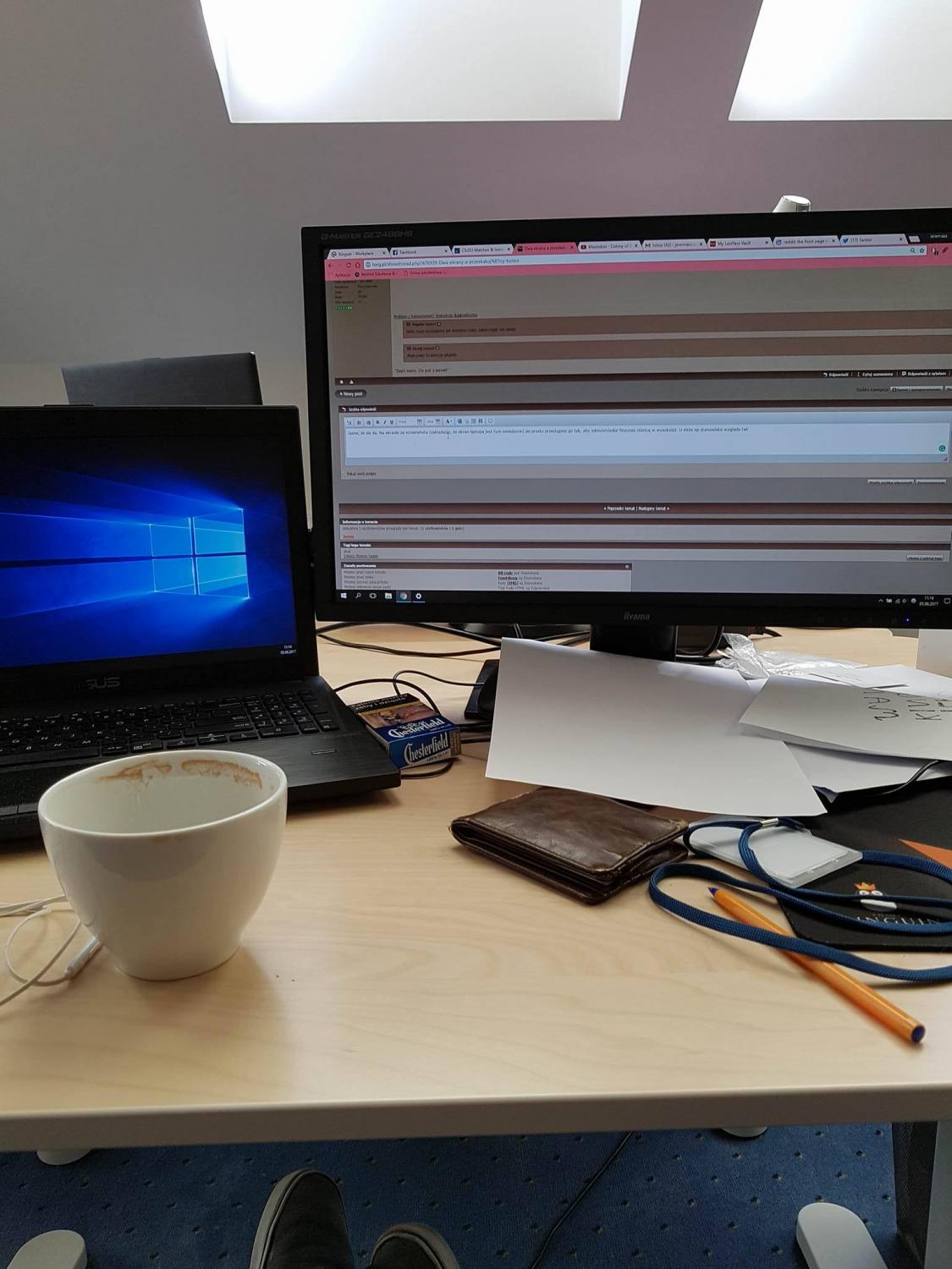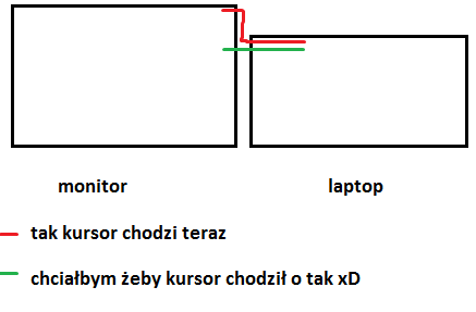 Sytuacja wygląda następująco iż mam monitor podpięty pod lapka i oczywiście używam go jako ekranu głównego ze względu na przyjemniejszą pracę jak i większy ekran. Sęk w tym że gdy kursor znajduje się np w lewym górnym rogu lapka i przesuwam go na ekran monitora to owa strzałka najeżdża na przycisk zamknij (np. przeglądarki czyt. prawy górny róg monitora) Czy istnieje jakiś sposób żeby kursor przechodził równomiernie z ekranu na ekran równomiernie, w tej samej linii?