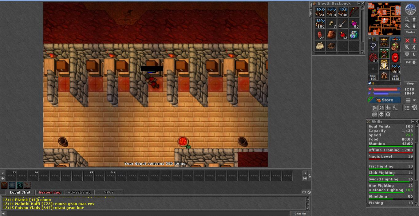 Uwagi: Na koncie w banku znajduje się ponad 2,7kk. Kilka lootów na kilkaset k leży w depo. Malo addonów porobionych, kilka ważniejszych questów. Sprzedaję, ponieważ nie gram już ponad rok. Dla zainteresowanych mogę podesłać więcej screenów. Na koncie również takie postacie jak: 38 palladyn (nika), 27 sorcerer (nika), 45 druid (nika)