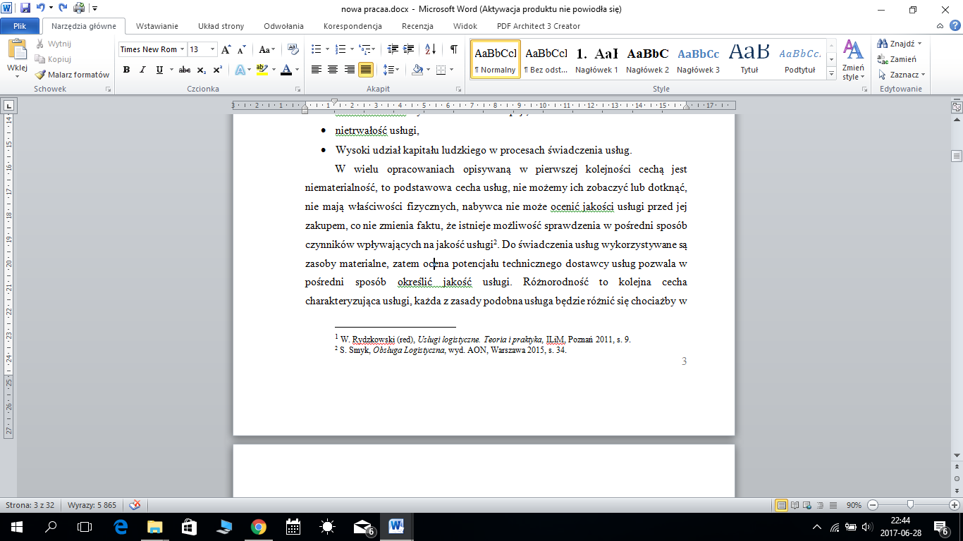 Zacząłem ustawiać akapity w pracy tak jak nakazuje moja uczelnia i zrobiłem mały burdel w przypisach.