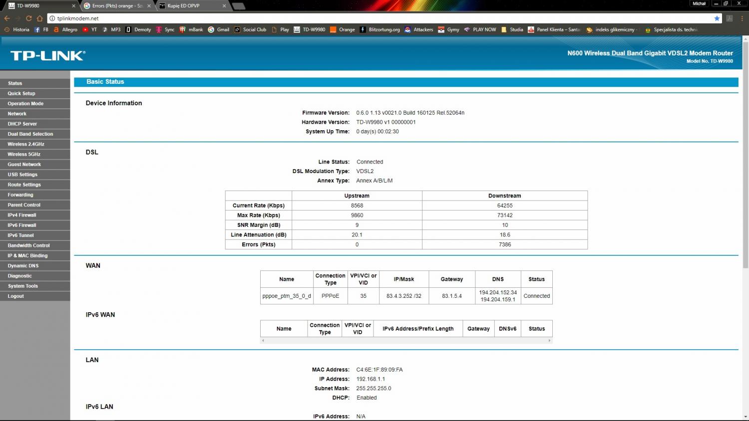 Witam, poniżej zamieszczam screen z jakości mojego połączenia internetowego, martwi mnie wysoka ilość Errors (Pkts) w downstreamie. Co to w ogóle jest?
